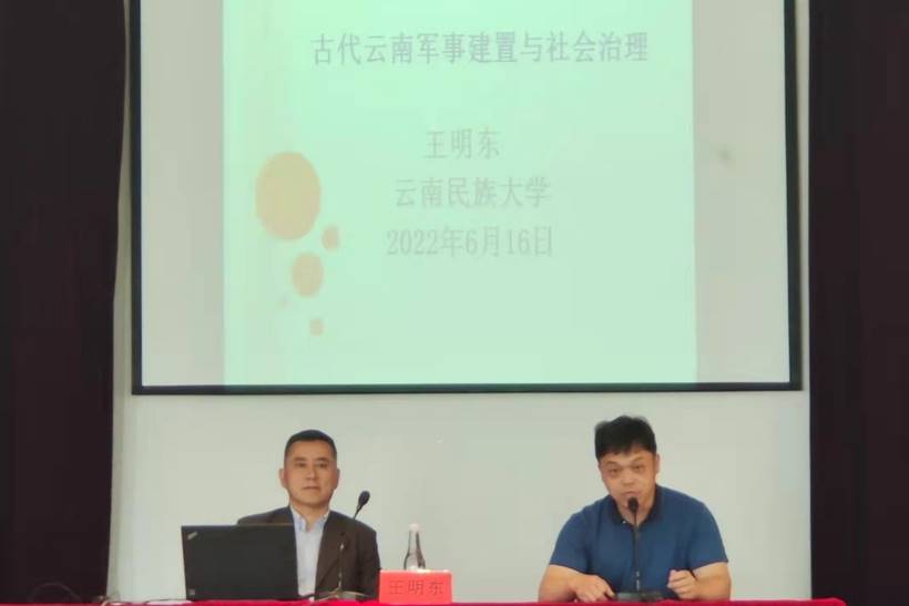 在两个小时的讲座里,王明东深入浅出地分享了对古代云南军事机构设置与社会治理的见解。王教授从大一统国家社会治理体系的重要组成部分,总结了古代云南社会的发展与民族交融的特点,解释了“云南”这一名称的由来,讲解了先秦、秦、汉、蜀、两晋共五个时期云南军事机构设置与社会治理的不同点及主体发展特点。讲授内容在中华民族整体历史观视野下,贯穿着国家认同、民族认同和文化认同。王教授的讲座引经据典、内容丰富,加深了师生们对云南的发展历史的认识,受到了师生们的一致好评。