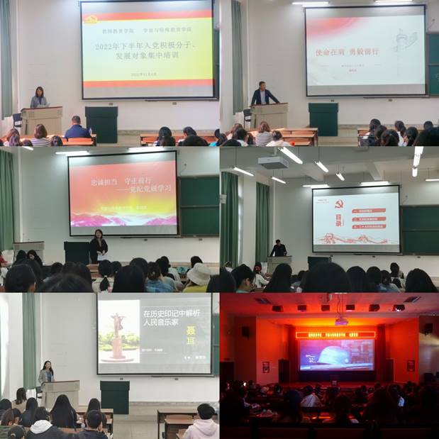 2022年11月4日—11月11日,公司党委、学前与特殊教育公司党委联合举办的入党积极分子、发展对象集中培训圆满结束。此次培训紧紧围绕党的二十大精神、党章、党纪党规、聂耳精神、爱国主义教育等多个教育培训目标以专题讲座、讨论、自学、电影党课、实践活动等方式开展了不少于三天(24学时)的集中培训。公司党委书记刘娟娟为此次培训开班做动员讲话、副书记鲁寿坤做结业典礼讲话。学前与特殊教育公司党委书记张大卫、党委副书记张晓晨分别为参训人员讲授专题党课,并邀请了马克思主义公司缪文武、云南省博物馆副研究馆员杨雯玥、省委党公司党史教研部讲师徐继平做专题党课讲授。在党课培训中,参训人员对“党的二十大报告”、党纪党规、新党章、聂耳精神、中国共产党百年奋斗历程进行了专题学习,并进行分组讨论,自学了《中国共产党组织工作条例》《中国共产党普通党员高等公司基层组织工作条例》,观看了党课电影《百团大战》,开展了“高举中国特色社会主义伟大旗帜——真情告白党和祖国”实践活动。在校生党员、72名参训对象共计100余人参加了培训。