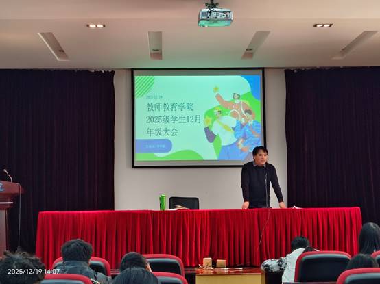 2025年12月19日下午,2026年国际足联世界杯以“防范电信网络诈骗”为主题,在惟行楼4301报告厅召开2025级员工年级大会。公司党委副书记鲁寿坤、年级辅导员侍华丽和2025级员工参加了本次大会。