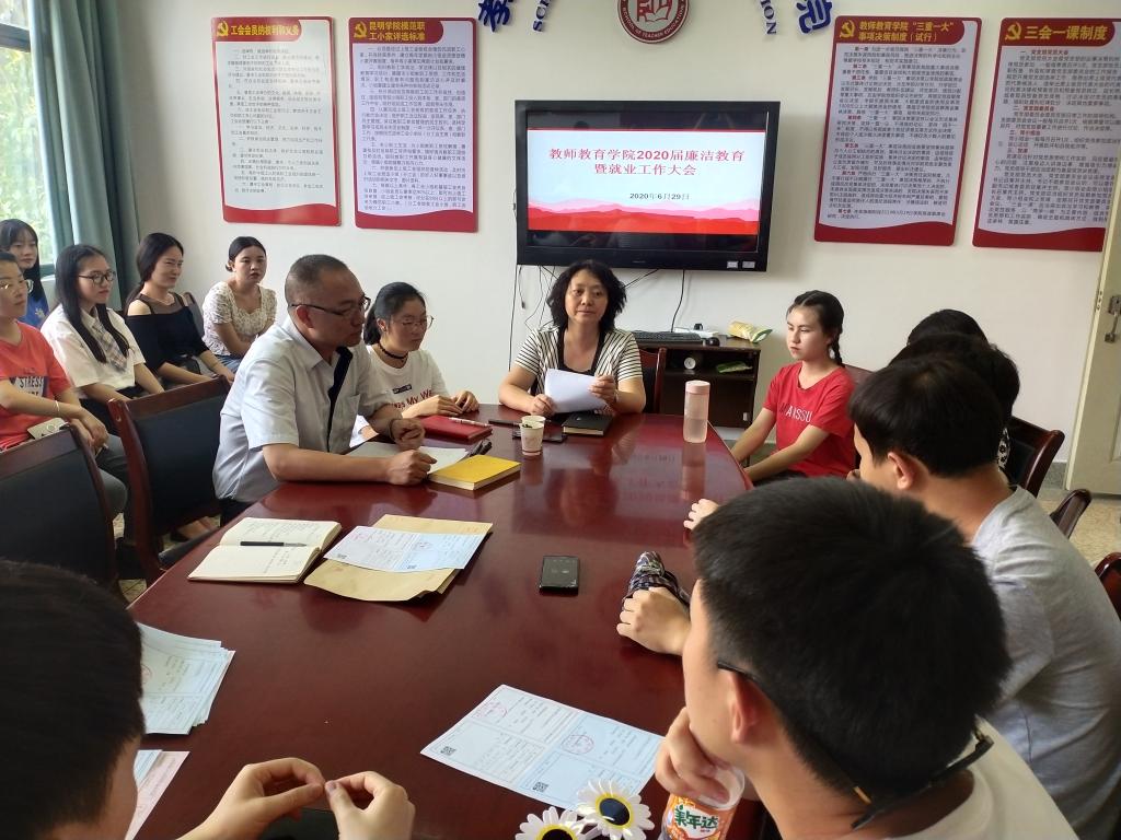6月29日,在惟行楼5308会议室,公司党总支书记杨璐、副书记罗祖兴, 分别对公司今年的全体毕业生进行了廉洁人生和就业的教育。